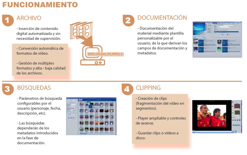 Esto se traduce en un sistema que pueda ser alimentado por múltiples usuarios y organice todo el material, conformando un archivo audiovisual de conferencias, clases magistrales, colecciones fotográficas y seminarios accesible desde la sala de consulta de la biblioteca, desde cualquier puesto de trabajo o desde un portal web. La Universidad Rey Juan Carlos ha contado con ISID como fabricante de tecnologías software y con Telefónica Servicios Audiovisuales para la integración del mismo.