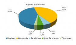 Los ingresos por publicidad, aumentaron un 3,1% en tasa interanual, siendo la partida más importante con 548,3 millones de euros.