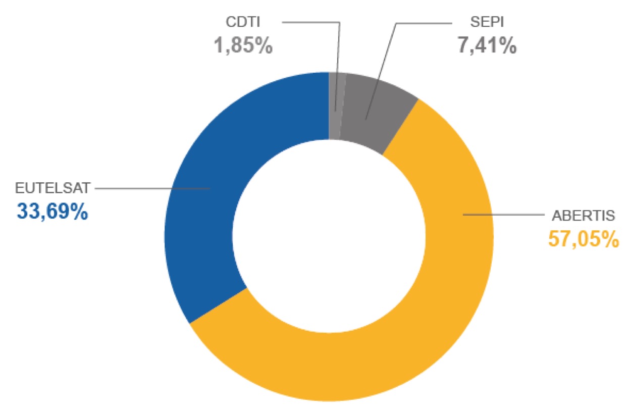 Dado su carácter estratégico, la compañía cuenta en su capital con la presencia del sector público español (Sociedad Estatal de Participaciones Industriales -SEPI- y Centro para el Desarrollo Tecnológico e Industrial -CDTI-), un operador de telecomunicaciones (Eutelsat) y Abertis, uno de los grupos líderes en España en la gestión de infraestructuras y servicios de telecomunicaciones, que el 12 de noviembre de 2013 se hizo con el control de la compañía al aumentar su participación accionarial.