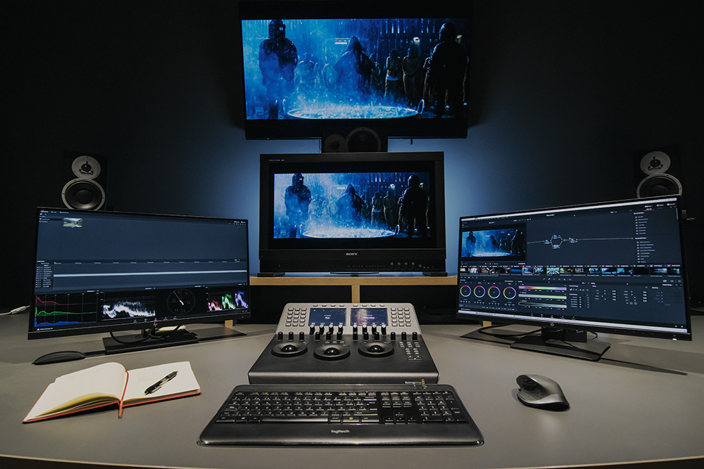 Concretamente, la principal sala de etalonaje cuenta con su propio proyector 4K Sony SRX-R515P para poder etalonar en DCI para cine y un panel DaVinci Resolve Advanced Panel, la máxima expresión a nivel de periféricos de control ofrecido por Blackmagic. Las otras tres salas, de menor tamaño, confían en el panel DaVinci Resolve Mini Panel. Ambos satisfactorios para Abellán y su equipo, este considera que la principal diferencia entre ambos son el número de accesos, si bien con ambos puede afrontar de manera solvente cada una de las producciones. La instalación se acompaña con una selección de monitores de Sony (BVM-X300, BVM-X310) y Dolby (PRM-4220) para asegurar la máxima fidelidad visual, así como de pantallas LED Panasonic HZ-1000, entre otros equipos