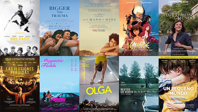 Las 10 historias continentales han sido presentadas por las academias y los comités de selección de sus respectivos países. Reino Unido ha escogido Belfast, de Kenneth Branagh, y Croacia Bigger than trauma, de Vedrana Pribačić. De factura italiana es Fue la mano de Dios, dirigida por Paolo Sorrentino, mientras que la apuesta de Luxemburgo es Icarus, de Carlo Vogele.