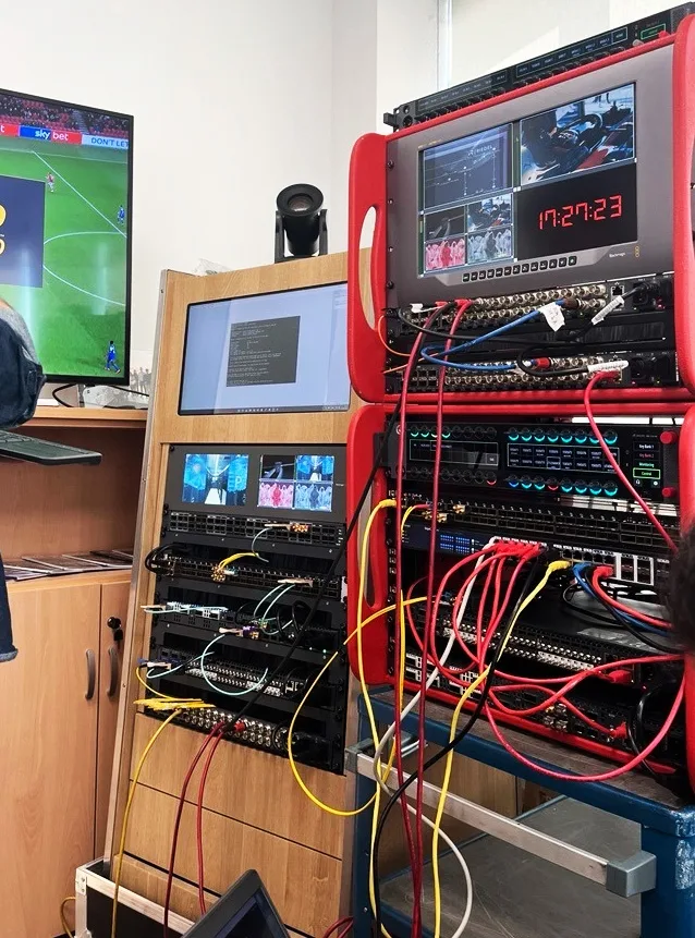 Crosspoint - Riedel - Evento Madrid La herramienta demostró todo su potencial como capa de control basada en navegador e independiente de la plataforma, la cual permite a los operadores gestionar una amplia gama de dispositivos, incluidos routers de banda base, multivisores, mezcladores de vídeo y audio y controladores SDN de terceros, a través de una interfaz intuitiva y personalizable. El sistema ofrece ventajas como detección automática de dispositivos, configuración sin necesidad de ajustes y arquitectura distribuida, las cuales fueron detalladas en profundidad por los equipos de Riedel y Crosspoint.