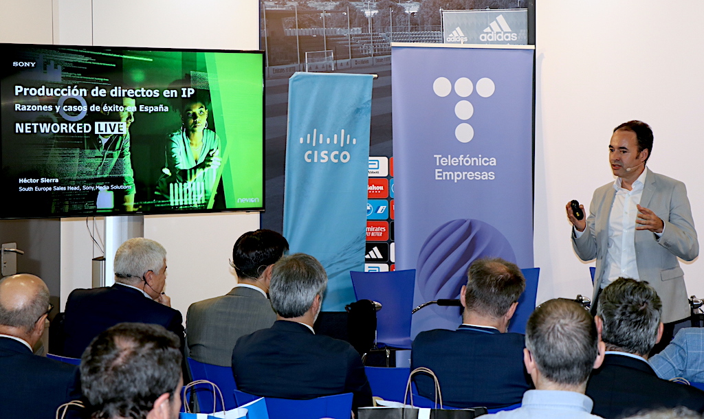 El director de ventas del sur de Europa de Sony, Héctor Sierra, ha iniciado su intervención asegurando que “el IP permite producir más y de manera más eficiente compartiendo y distribuyendo recursos; disponer de mayor flexibilidad y escalabilidad absorbiendo necesidades puntuales elásticamente; mejorar la sostenibilidad de la producción con menos desplazamientos y logísticas más sencillas; y asegurar la vigencia tecnológica en base a disponibilidad presupuestaria no recurrente”.