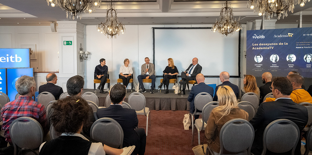 El Hotel de Londres de Donostia acogió esta nueva edición de “Los Desayunos de la Academia”, la cual tuvo por título “Las televisiones y plataformas como motor de nuestro cine”. El coloquio contó con la bienvenida de Carmen Páez, subsecretaria del Ministerio de Cultura, y Andoni Aldekoa, director general de EITB.