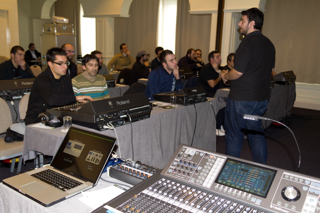 Nico Suárez, audio&video product especialist en Roland Systems Group Iberia, admite que desde el principio “tuvimos claro que debía ser una sesión ‘hands-on’ ya que es dónde realmente se adquiere confianza y conocimiento sobre el producto, así pues, por cada dos alumnos había un mezclador. Disponiendo de diez mezcladores nos daba un total de una veintena de alumnos por seminario, cifra que se ha visto superada en todas las ciudades teniendo que dejar a unas 60 personas en lista de espera para próximos trainings”.