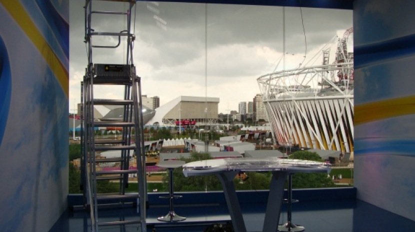 El Estadio Olímpico de Londres se ha convertido en la joya de Londres durante los Juegos Olímpicos de este año, y todas las cadenas de televisión desean tener el estadio u otros elementos del Parque Olímpico detrás de sus presentadores mientras graban su cobertura de la 30ª Olimpiada. El espacio para los estudios alrededor del estadio es limitado, así que las cadenas comenzaron a buscar soluciones alternativas. Por ejemplo, la BBC, alquiló la azotea y el piso 22 de un edificio de oficinas, y Al Jazeera construyó un estudio sobre el piso 24 de un edificio de apartamentos porque “les gustaban las vistas”.