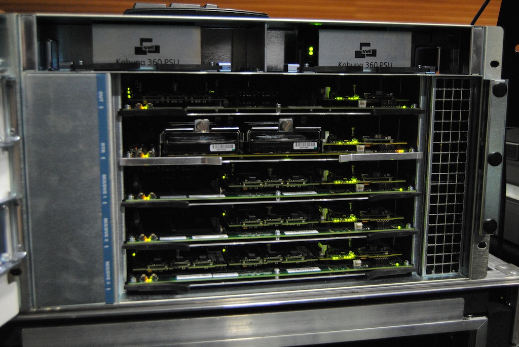 En la presentación llevada a cabo en el Edificio Imagina en Barcelona hemos podido ver en acción la versión compacta del panel con un Kahuna Compact con 3 M/E trabajando a pleno rendimiento con material tanto 1080i como 1080p. Un servidor ICE y el panel de control de auxiliares completaban esa instalación de demo. Es de destacar que todos los paneles son compatibles con las nuevas electrónicas por lo que en cualquier momento se puede actualizar a un chasis mayor o compatible con 1080p, con el mismo panel con el que ya se contaba. De esta forma se protege la inversión desde primer momento ante posibles futuras ampliaciones.