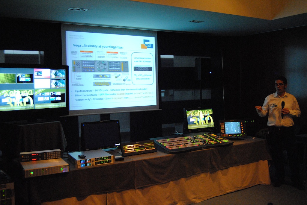 Snell, in collaboration with Unitecnic han organizado este jueves en Madrid una jornada de presentación de sus últimas novedades como el mezclador de producción multiformato Kahuna 360, la nueva gama de conversores KudosPro y la primera matriz asimétrica y personalizable, Vega. Además, de la gama de la gama de mezcladores multiformato compuesta actualmente por Kahuna 360, Kahuna 360 Compact y Kahuna Flare, en esta jornada hemos podido apreciar las ventajas de los nuevos conversores KudosPro, muy compactos y con muchas opciones, y la nueva matriz Vega, totalmente asimétrica que aporta una flexibilidad desconocida hasta ahora.
