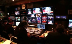 A medida que se capta cada secuencia con sus entradas y fuentes preestablecidas en el mezclador se muestran en tres pantallas Multiviewer en la sala de control de la UCLA mientras que la siguiente escena en marcha se visualiza en otro multipantalla. Estas pantallas Multiviewer se generan internamente por el sistema DYVI.