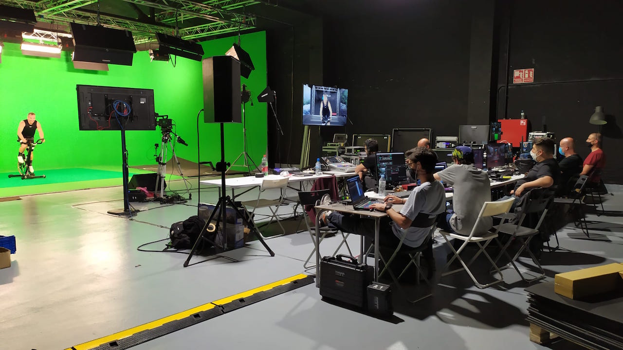 Usando diferentes cámaras 4K dentro de este entorno virtual (cámaras grúa, así como cámaras controladas por control remoto de Xbox One), la formación de Les Mills se retransmitió en tiempo real vía streaming gracias a la tecnología WebRTC de cero latencia proporcionada por StreamNinja, la cual permite hacer streamings con tan solo 0.5 segundos de delay y en 4K.