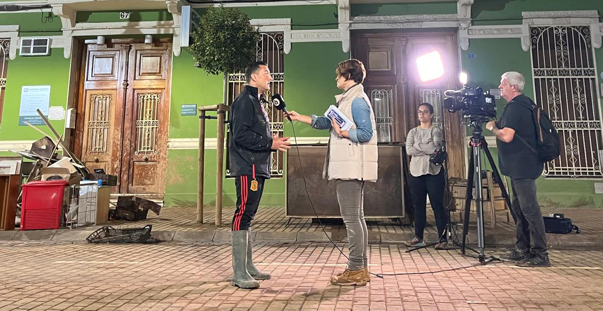 “Al tercer día de la dana, nos llamó una vecina de Paiporta que había trabajado en Canal Nou, nuestra anterior etapa. Nos contó que su marido era informático y había volado un dron al día siguiente cuando no había llegado nadie; las imágenes eran un documento histórico, y nos las quería dar a nosotros… Pero no tenían Internet y teníamos que ir andando, llevar un disco duro, recoger las imágenes y volver…”.