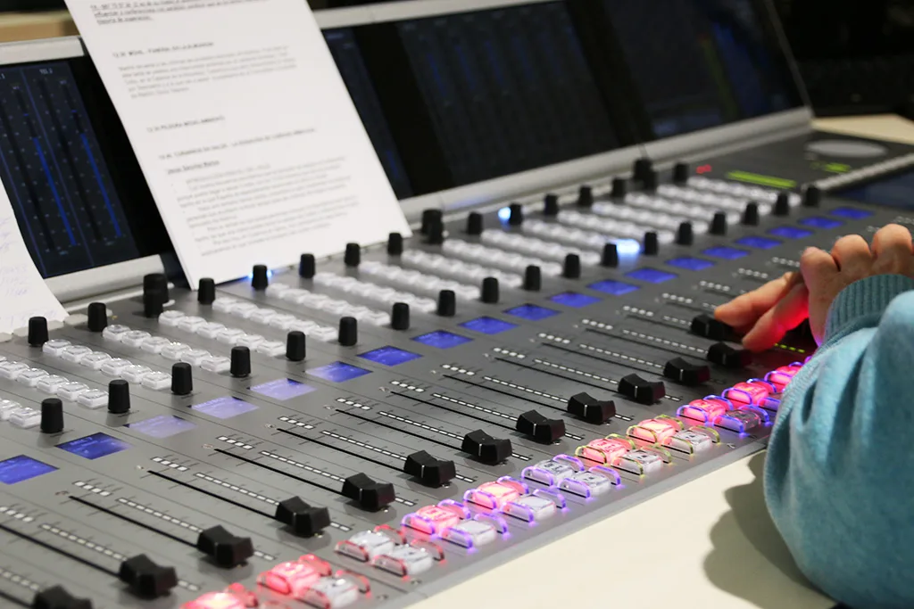 “Todo es nuevo: micrófonos, mesa, instalación… Lo único que se ha aprovechado ha sido parte de la mesa digital, que ya era compatible con las tarjetas que teníamos antes”, explica José Ignacio Hernández, responsable de medios técnicos de Onda Madrid. Las nuevas soluciones de la emisora toman como base la transformación digital que Onda Madrid acometió hace seis años, en la que se apostó por el AoIP habilitado por una red Dante (Audinate). Aun así, la red analógica se resiste a abandonar las instalaciones de Ciudad de la Imagen: “Hemos mantenido la parte analógica antigua, por si acaso. Funcionamos con audio transportado por Dante, pero como las tarjetas ya estaban operativas, hemos decidido dejarlas por si surge cualquier problema”, añade Pablo de la Peña, subdirector de ingeniería.