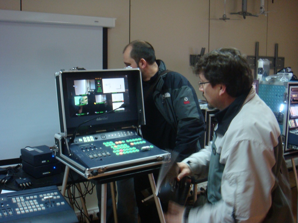 A lo largo de cuatro jornadas, Dimasa ha presentado en Barcelona y Madrid las interesantes propuestas de Datavideo en cuanto a estudios móviles para producción. Alojados en un rack o, incluso, en una maleta, Datavideo ofrece la posibilidad de poner en el aire para televisión o producir un evento en vivo en entornos corporativos de circuitos cerrados todo un estudio en cuestión de minutos. Cada uno de estos estudios móviles se componen de diferentes elementos que Dimasa comercializa ya configurados, o por separado, en racks con todo lo necesario para salir al aire. Se trata de auténticos centros de producción alojados en una maleta, listos para trabajar y dar salida multiplataforma para televisiones locales, retransmisión de eventos en circuito cerrado o IPTV. Según el modelo, incluyen mezclador (con todo tipo de cortinillas, fundidos y efectos), monitores (multipantalla para previos, PGM y DVI), disco duro e intercom (para hasta ocho puestos), entre otras funciones.