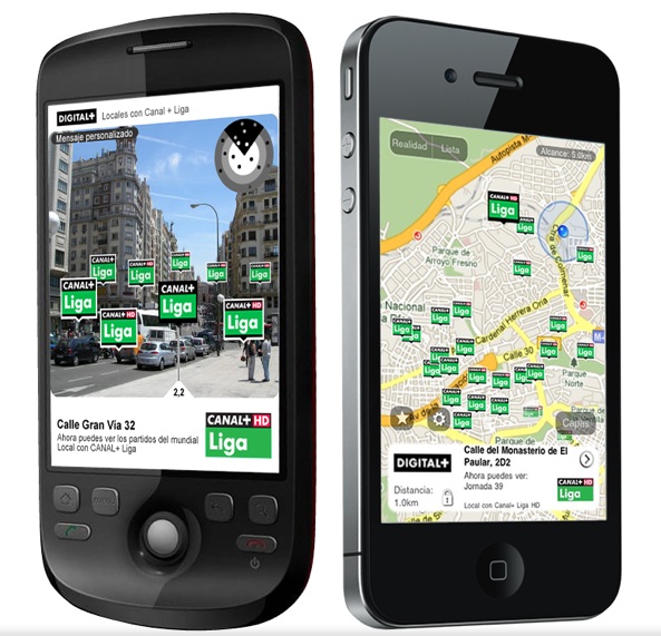 Digital+ ha comenzado a utilizar la tecnología de realidad aumentada para que los amantes del fútbol de cualquier parte de España puedan disfrutar, también fuera de casa, de la Copa del Mundo de Sudáfrica 2010. Una nueva y práctica forma para encontrar fácilmente un bar donde poder seguir el Mundial.