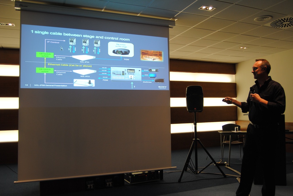 Por último, destacar una de las soluciones que, presentada en primicia en IBC, más llaman la atención a cuantos profesionales pasan por el roadshow de Sony es la posibilidad de producir directos vía IP con la nueva unidad NXL-IP55.