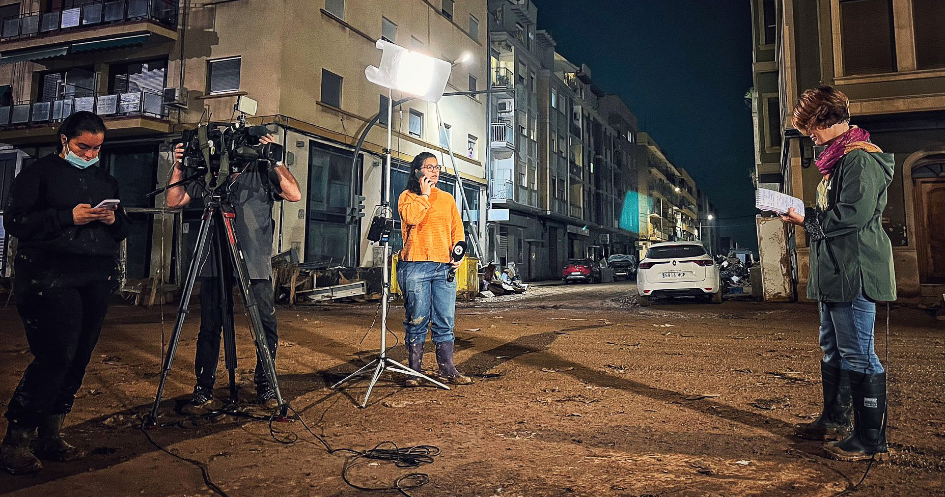 Frente a un relato oficial que justifica una negligencia en la imprevisibilidad, acompañado con las habituales acusaciones cruzadas, À Punt, la televisión pública valenciana, asegura que la dana les “cogió prevenidos”. Tanto es así que, en la misma mañana del día 29, los informativos de la cadena ya informaban de las primeras inundaciones y riadas; todo, con equipos técnicos como mochilas o DSNG alquilados con anterioridad.