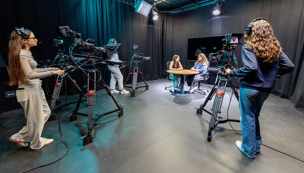 El estudio principal se vertebra en torno a cuatro cámaras URSA Diffusion G2 conectadas por fibra SMPTE. La mezcla se realiza con un ATEM Constellation 8K, aunque también se emplea un ATEM SDI Extreme ISO para proyectos fuera del estudio o para clases prácticas móviles. El sistema, que se complementa con un ATEM Camera Control Panel et un SmartScope Duo para análisis técnico de forma de onda y vectorscopio, cuenta con el HyperDeck Studio 4K como fuente de grabación. Ambas mesas cuentan con la misma base de software, lo que facilita la formación y favorece una transición fluida entre los distintos entornos.