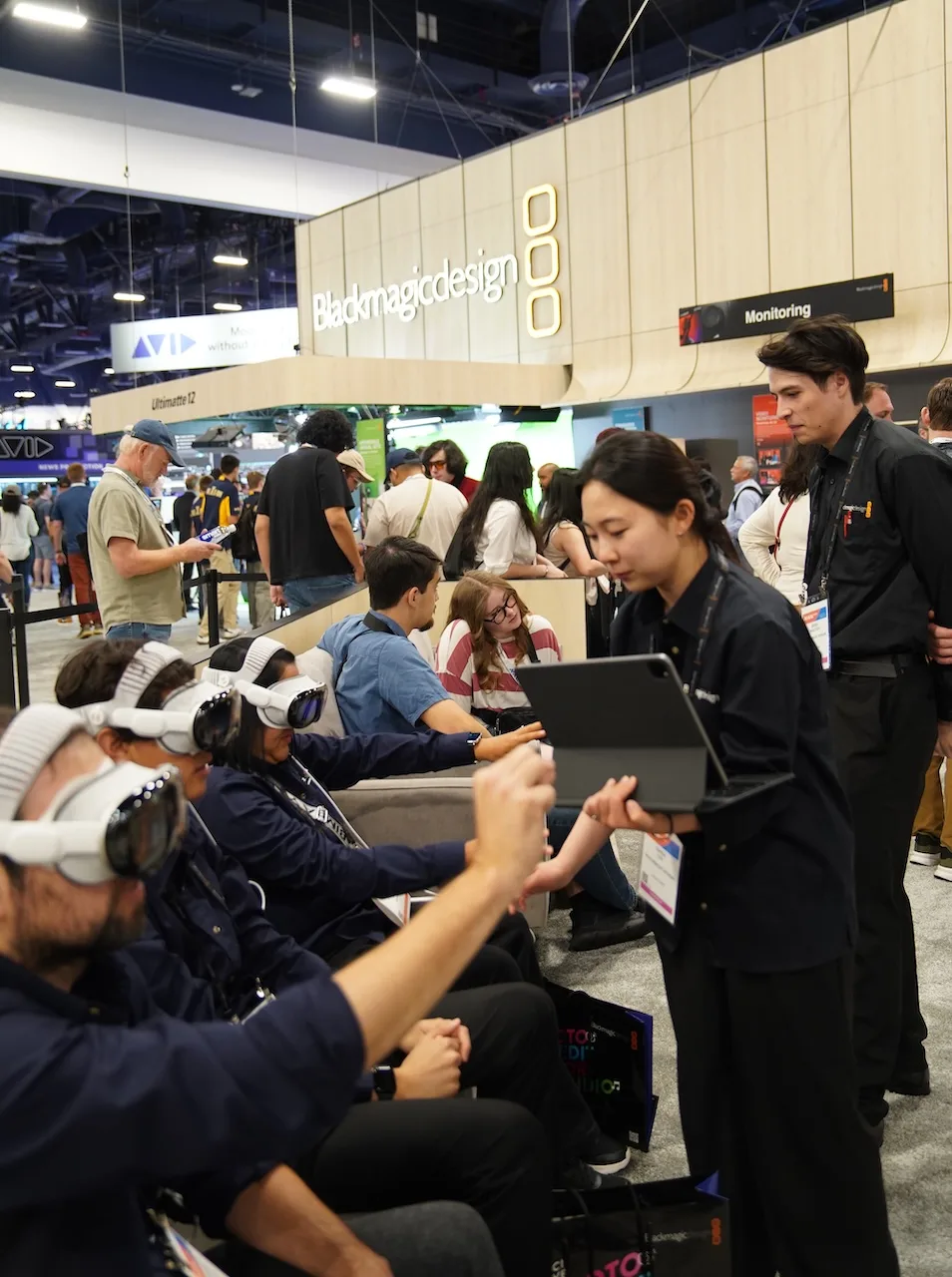 D'un autre côté, le Blackmagic URSA Cine Immersive 100G constituye el “primer modelo cinematográfico inmersivo” que ha sido diseñado llevar a cabo producciones en directo en formato Apple Immersive Video. Incluye dos sensores RGBW 8K × 8K, un rango dinámico de 16 pasos y conectividad Ethernet 100G a fin de ofrecer el ancho de banda necesario para transmitir imágenes inmersivas en vivo por primera vez. El sistema llega acompañado del Blackmagic URSA Live Encoder, un módulo que comprime dichas imágenes en archivos ProRes para transmitirlos por medio de señales IP SMPTE 2110-22, lo cual permite combinar las secuencias estereoscópicas de alta frecuencia en una sola conexión Ethernet 100G.