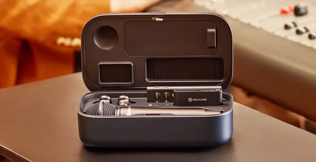 En cuanto a la captura de audio, Hollyland presenta en primicia en NAB 2026 el MELO P1, “primer sistema de mezcla vocal todo en uno ultracompacto del sector” cuyo lanzamiento está previsto para junio. Con una arquitectura totalmente inalámbrica, la solución brinda características como cancelación de ruido mediante IA, así como un procesamiento de “calidad de estudio”, optimizado para ofrecer voces nítidas incluso en salas sin acondicionamiento acústico. Con una amplia gama de preajustes vocales y capacidades de control intuitivas a través de una aplicación, el sistema optimiza el procesamiento del sonido para cantantes, streamers en directo y creadores de contenido.