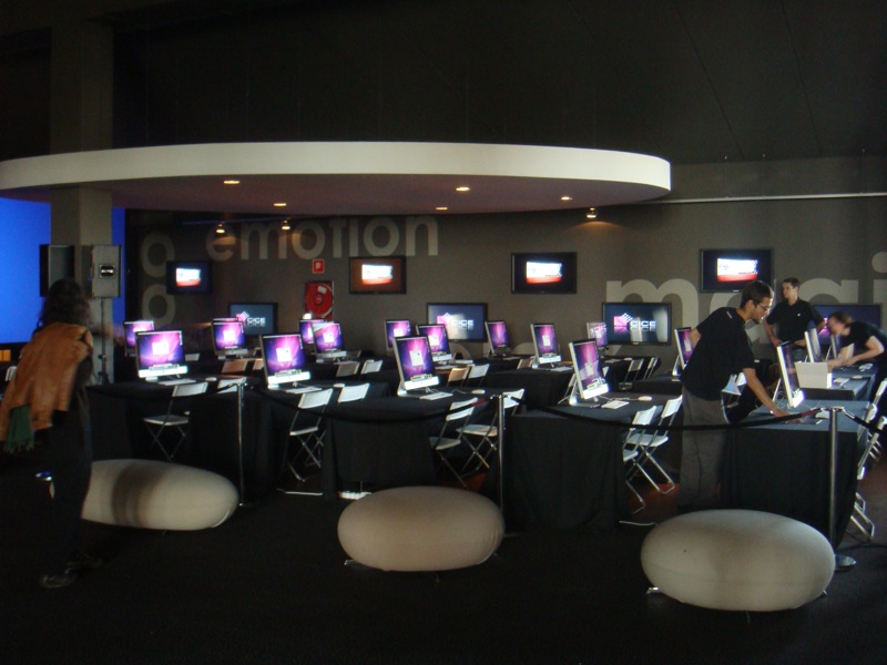 Uno de los aspectos fundamentales del Pro Studio Series 2009 es la formación. Compolaser montó dos salas con medio centenar de iMacs desde los que los principales centros de formación del país como CICE, CECA, Microfusa, Trazos y Prada Audiovisual impartieron dos sesiones cada uno de ellos profundizando en los sistemas Logic Studio, Color, Final Cut Server, Motion y Final Cut Pro. Lleno total en cada una de las sesiones.