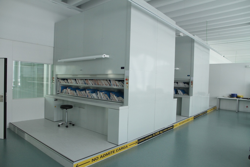 El bloque de archivos constituye el núcleo del proyecto. Enteramente subterráneo, para garantizar su aislamiento del terreno, este bloque ha sido concebido como una caja dentro de otra caja, estando la caja interior totalmente separada de la exterior por un conjunto de cámaras de aire de más de un metro de anchura. Estas cámaras se utilizan para el paso de los conductos del aire acondicionado y, si fuese el caso, se podrían utilizar para la evacuación de humos, en caso de incendio, o para mantener permanentemente la ventilación en condiciones de fallo muy prolongado del suministro eléctrico.