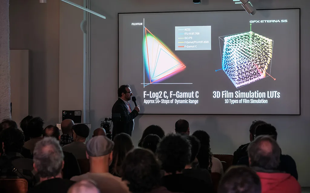 En la House of Photography de 富士フイルム en Barcelona, más de 50 profesionales del sector audiovisual han podido descubrir a través de un taller práctico todas las claves de la GFX Eterna 55, la gran apuesta de la marca nipona para lanzarse al mercado cinematográfico.