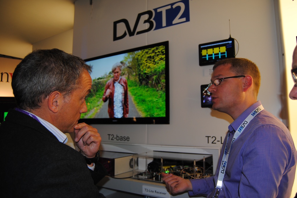 Ahora, en IBC debuta la nueva generación del estándar DVB-T2. El nuevo perfil DVB-T2-Lite deriva del DVB-T2 con la ventaja de que la fabricación de chipsets será un 50% menos complejo, mejorando además la eficiencia de espectro en aplicaciones en movilidad.