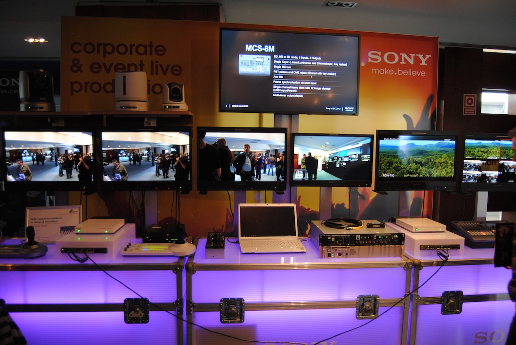 La exposición de equipamiento recoge soluciones para producción de eventos, área en la que Sony pisa fuerte con la gama NXCAM y XDCAM HD422 con los camcorders PMW-100, PMW-150, PMW-200, NEX-EA50, NEX-FS100, NEX-FS700 HXR-NX30 y HXR-NX70.