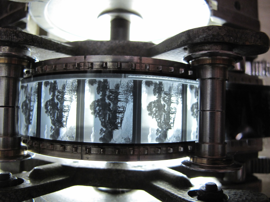 La instalación cuenta con una pequeña sala de proyección equipada con proyectores de 35mm, 16mm y un proyector digital que permite controlar la calidad de las reproducciones y restauraciones