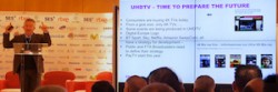 Stinerhour ha iniciado su intervención analizando el mercado del broadcast a nivel mundial que mueve más de 24.000 millones de dólares. “Esta cifra hay que tenerla en cuenta ya que no pagamos por innovación sino hay retorno de la inversión. Como en ocasiones anteriores, esta migración la pagarán los consumidores, anunciantes, las Administraciones y compañías de media”, ha comentado.