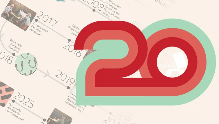 Audinate 在 Dante 成立 20 周年之际确定了定义 Dante 的 13 个里程碑