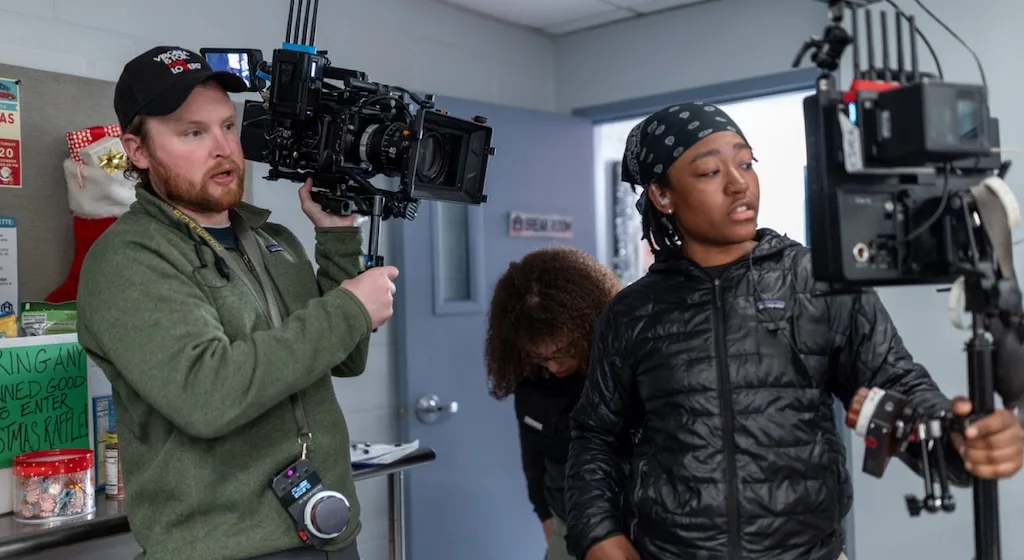 Ohi se alegró al constatar el excelente rendimiento de los modelos URSA Cine 12K LF y PYXIS 12K, incluso al enfrentar situaciones desafiantes. “Había una sala de juntas con un ventanal que abarcaba toda la pared, durante un rodaje en pleno inverno en Richmond, Virginia, y todo el equipo tenía que mantener un equilibro de exposición consistente entre la iluminación que provenía de las ventanas y el resto de la sala conforme caía la tarde”, agrega Ohi. “El rango dinámico de las cámaras y su capacidad para manejar las luces tenues o de contraste hizo de lo que podría haber sido un día lleno de obstáculos uno en el que fue fácil trabajar. A medida que el sol se ponía, pudimos mantener la exposición de las ventanas al mismo nivel que el de la habitación con el apoyo de tan solo algunos paneles de iluminación, configurados literalmente al uno por ciento. Ni el jefe de eléctricos ni el de maquinistas podían creerlo. Shane Guild, mi jefe de eléctricos, a modo de broma me preguntó “¿Ya me quedé sin trabajo?””.