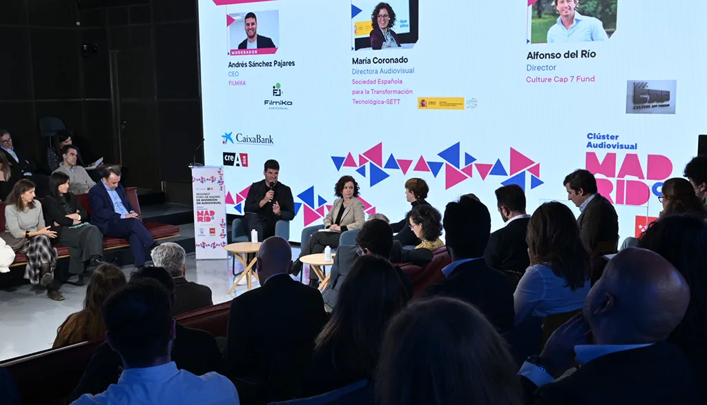 El II Foro de Madrid de Inversión en el Audiovisual, una iniciativa del Clúster Audiovisual de Madrid en colaboración con instituciones públicas y con el apoyo de Crea SGR y CaixaBank, ha reunido a productoras, expertos, fondos de inversión y entidades financieras para abordar las nuevas fórmulas de inversión de la industria audiovisual.